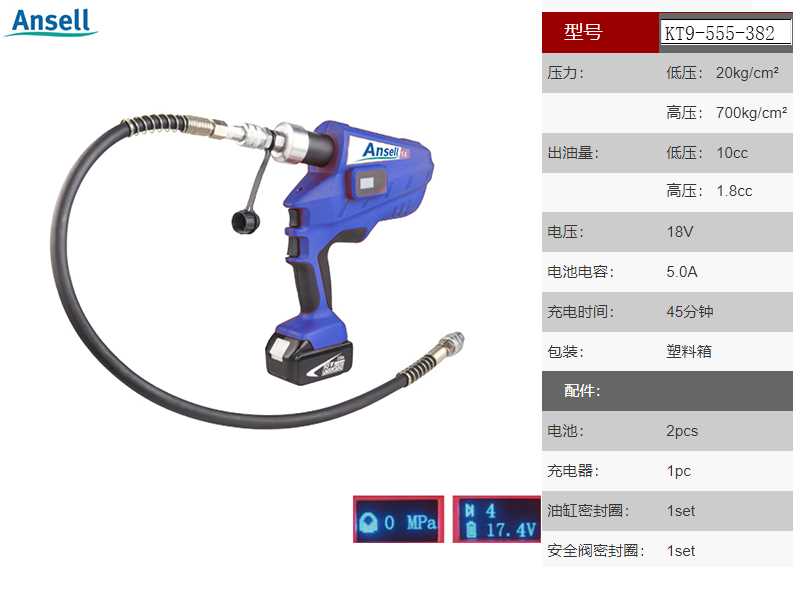 KT9-555-382 Ansell/安司尔 KT9-555-382 C24106 充电式电动泵