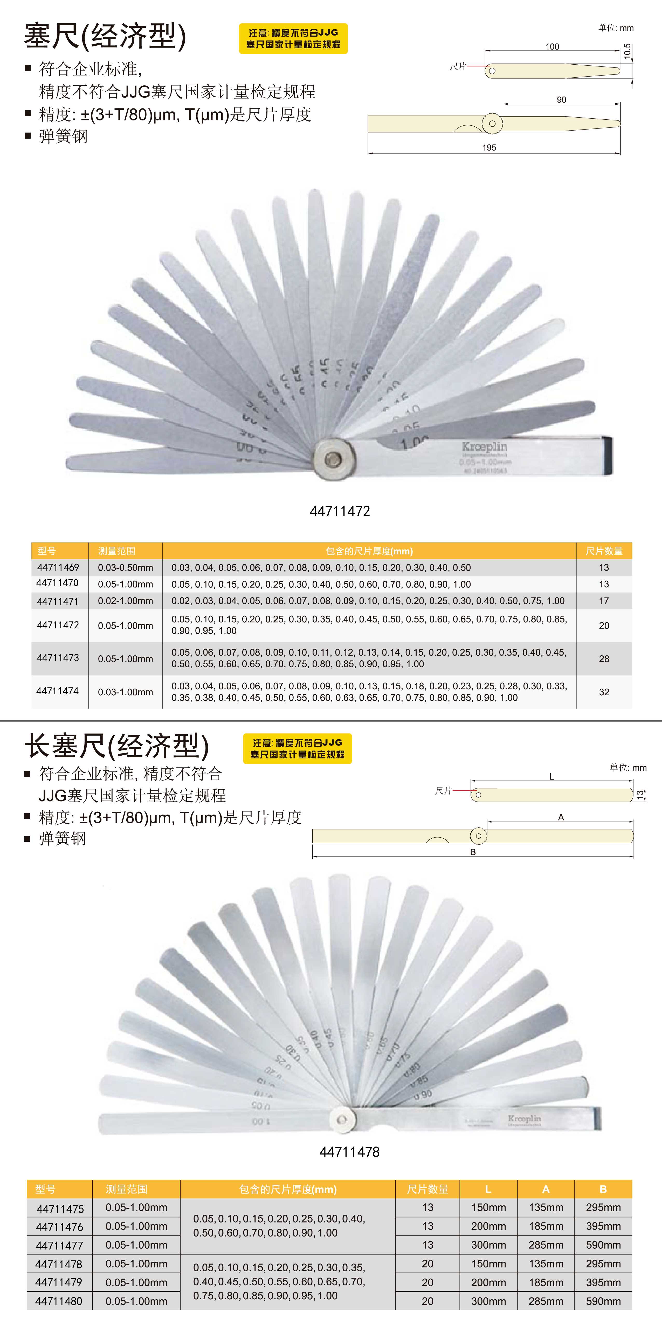 44711476 kroeplin/凯普林 44711476 B20880 长塞尺(经济型)