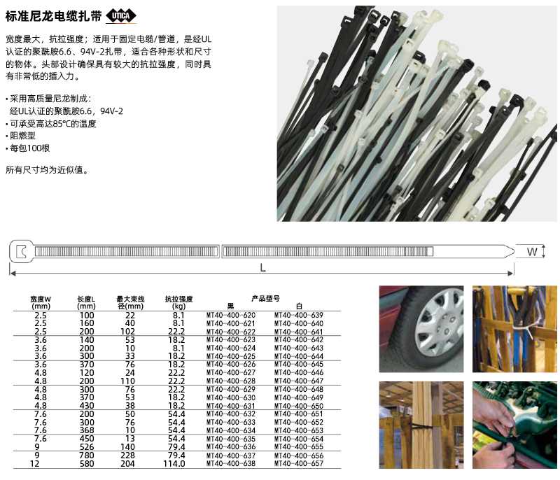 MT40-400-630 优迪卡 MT40-400-630 J15381  标准尼龙电缆扎带 黑