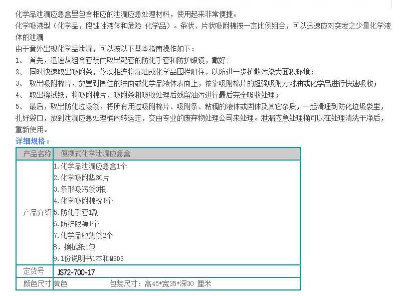 JS72-700-17 UTICA/优迪佧 JS72-700-17 J13229 化学品泄漏应急盒
