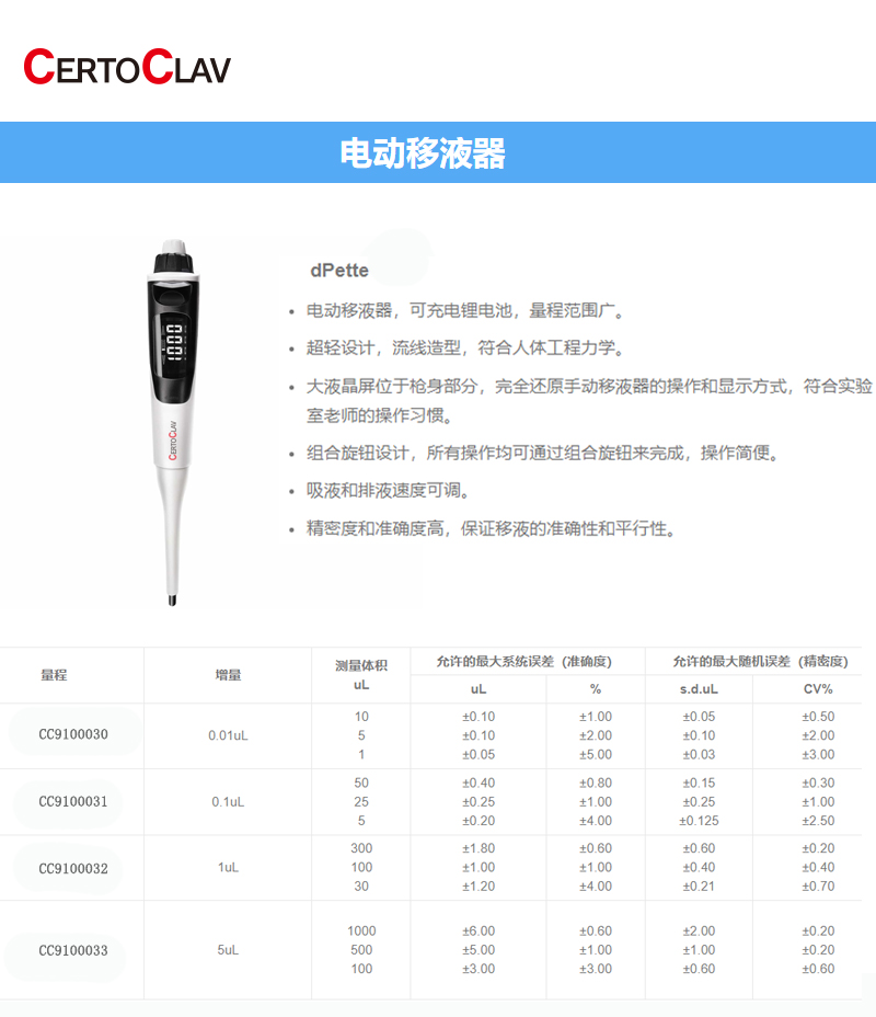 CC9100031 CERTOCLAV 卡尔证书 CC9100031 K23604 简易款单通道电动数显移液器 产品主图覆盖