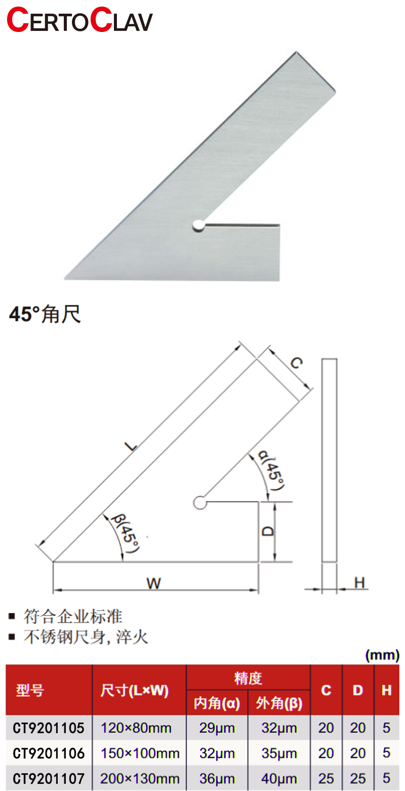 列: CERTOCLAV 卡尔证书45°三角尺系列