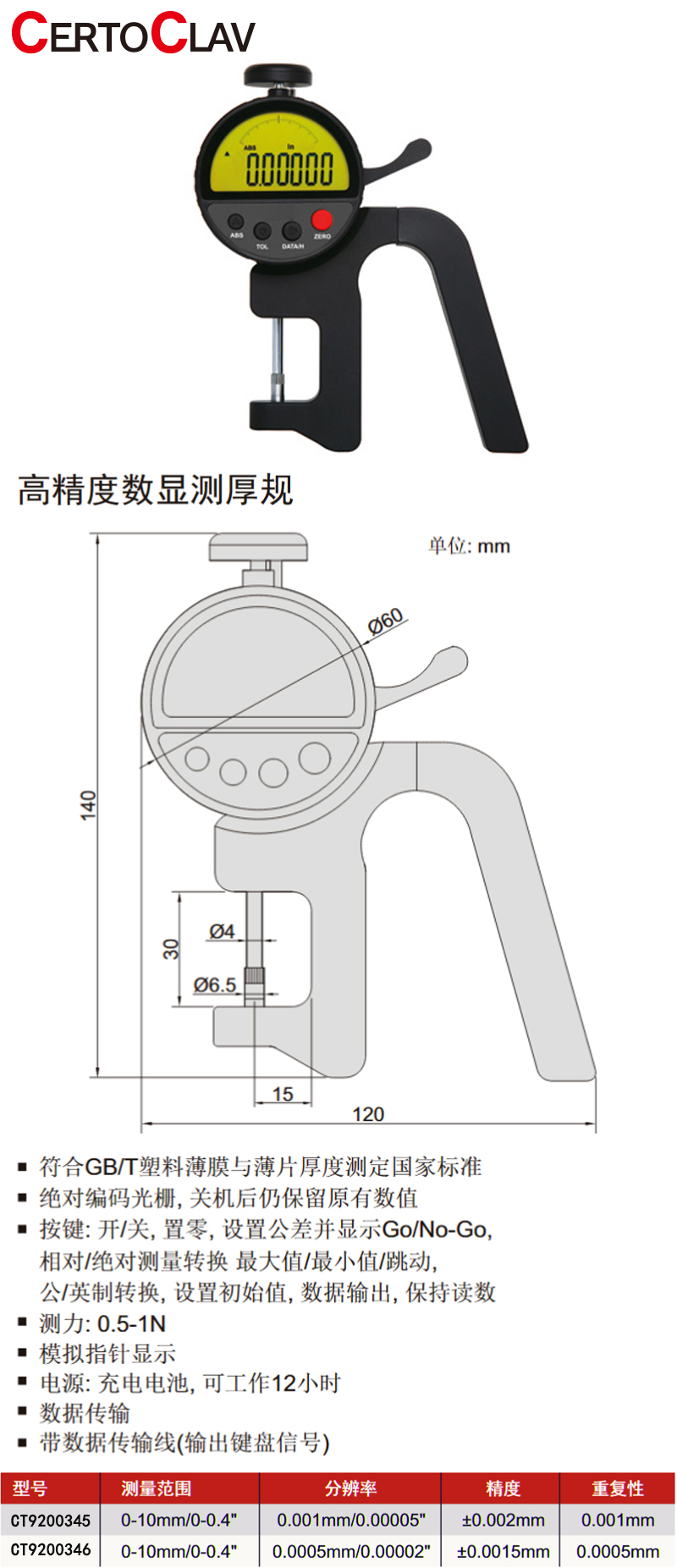 CT9200345 CERTOCLAV 卡尔证书 CT9200345 K28181 高精度数显测厚规 产品主图覆盖