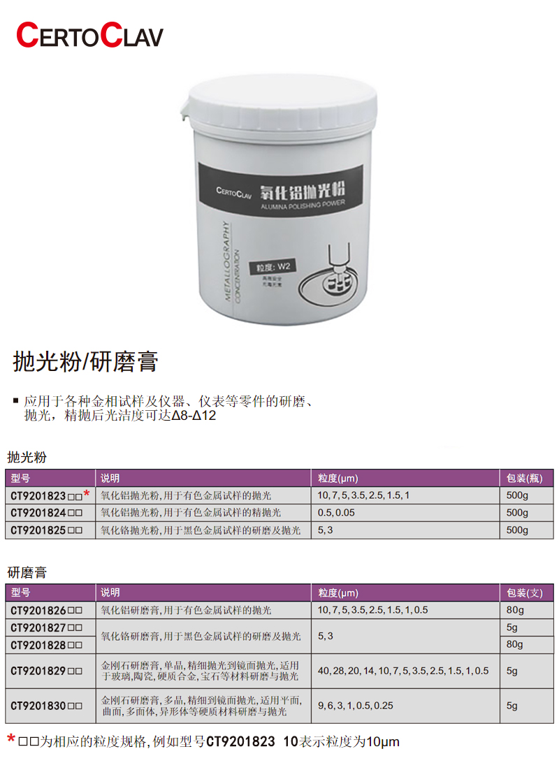 CT9201830 CERTOCLAV 卡尔证书 CT9201830 K28558 抛光粉/研磨膏