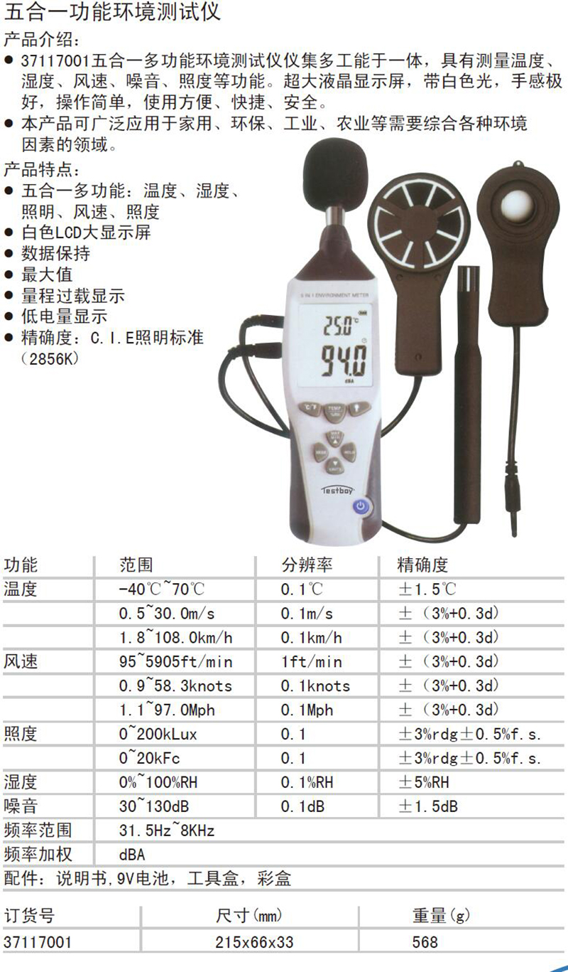 TESTBOY/特博特 37117001 AF061114 五合一多功能环境测试仪