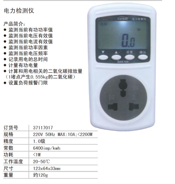 TESTBOY/特博特 37117017 AF065631 电力监测仪