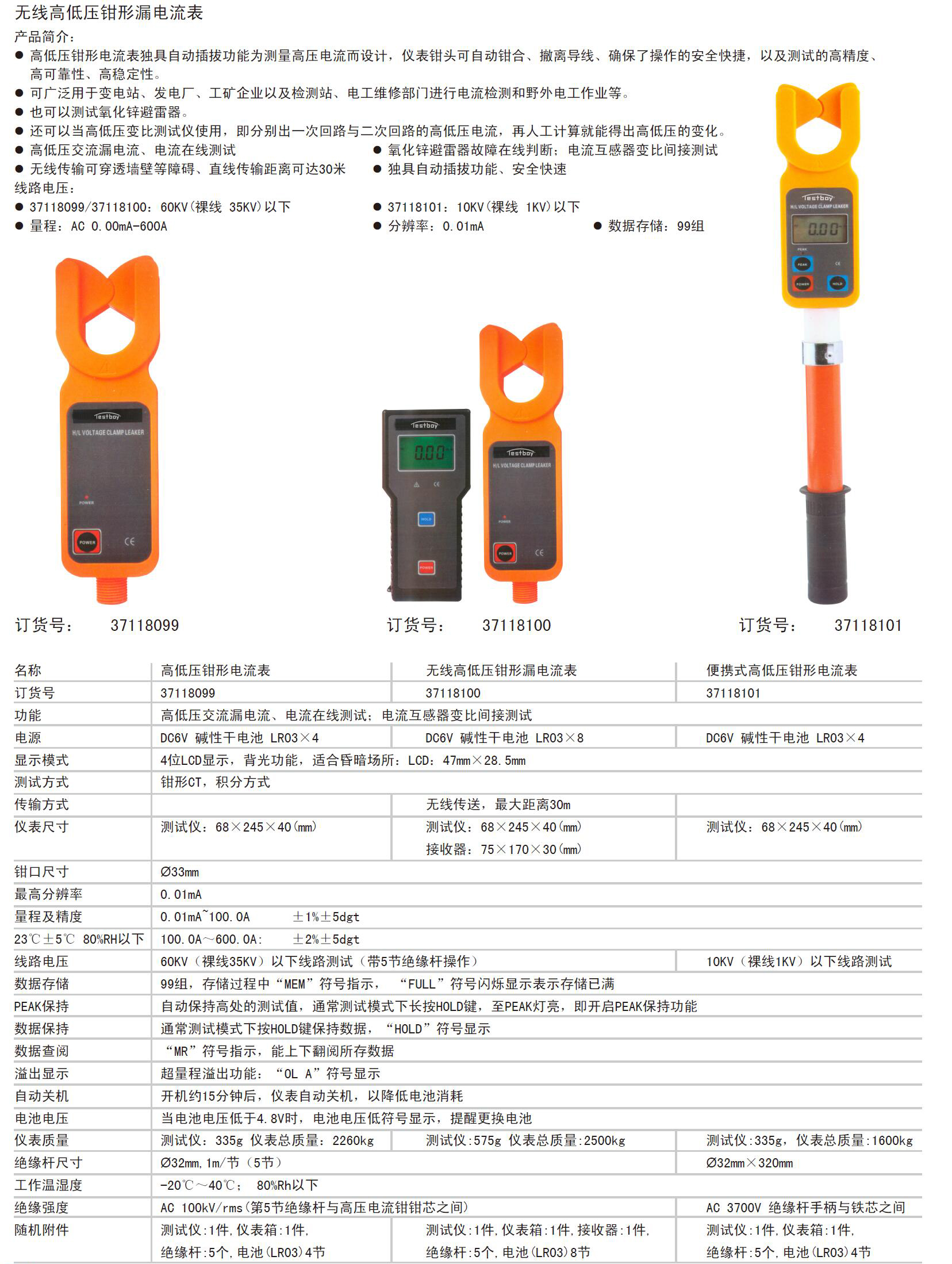 37118101 TESTBOY/特博特 37118101 AF059774 便携式高低压钳形电流表 产品主图覆盖