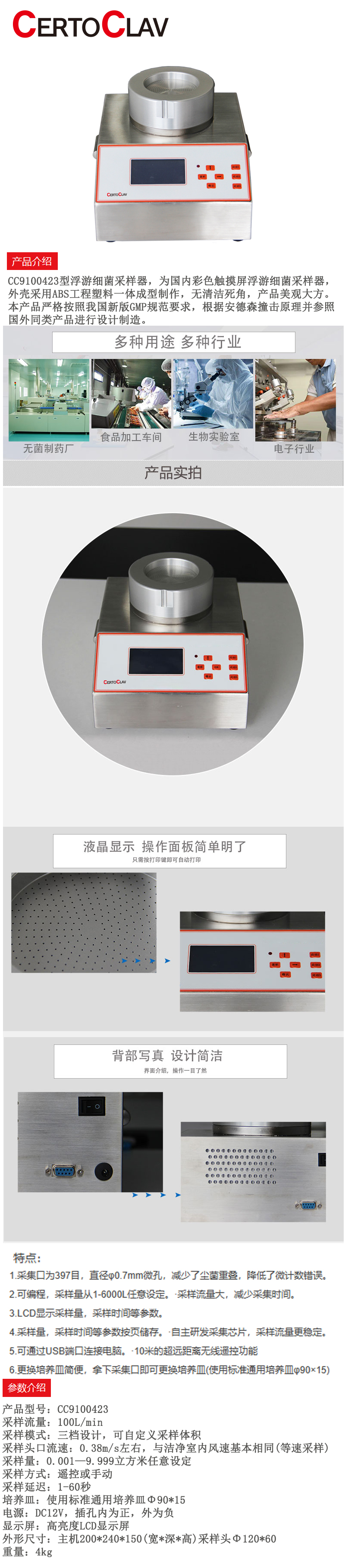 CC9100423 CERTOCLAV 卡尔证书 CC9100423 K23626 浮游菌采样器 产品主图覆盖